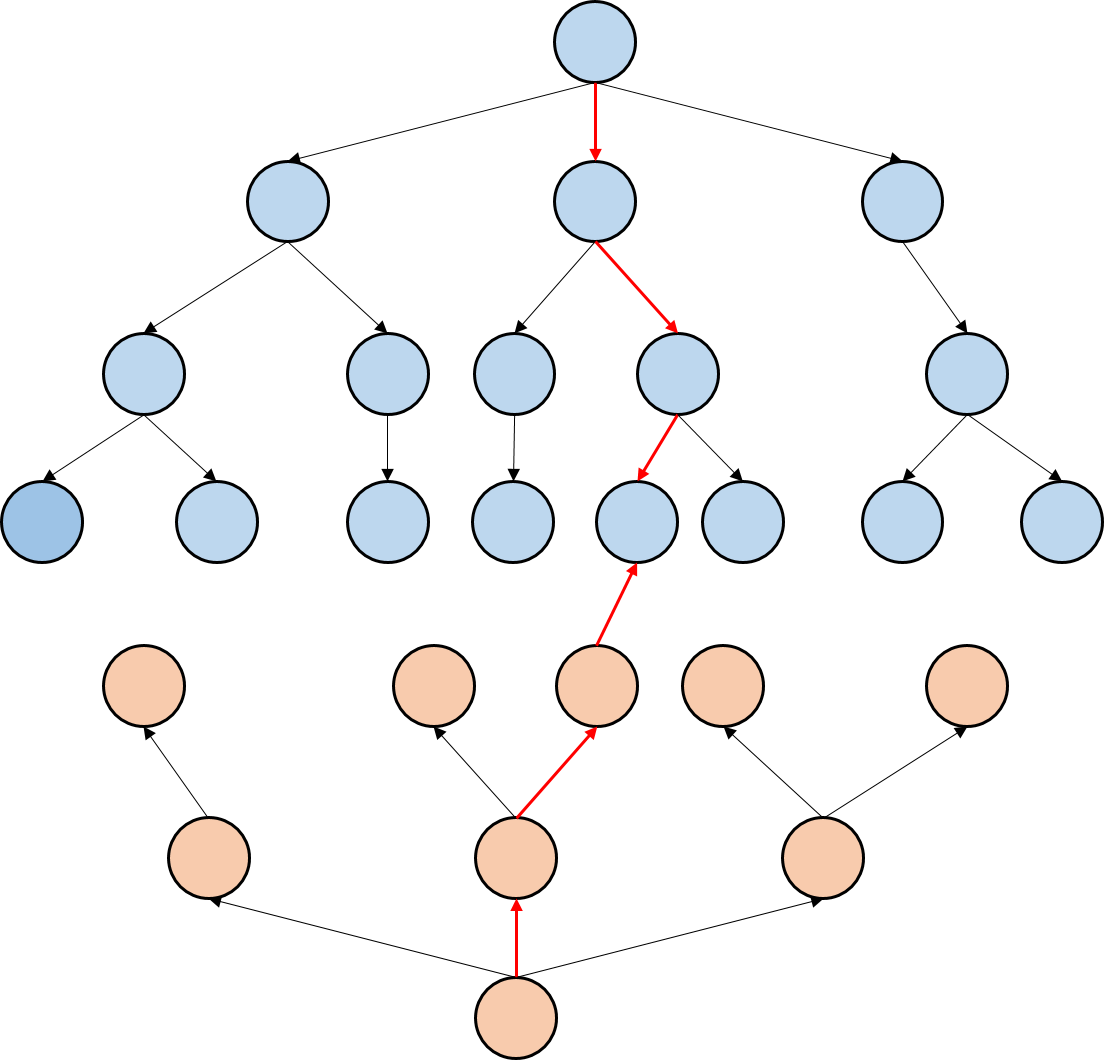 - beta 剪枝。若任意 MAX 层结点有 alpha(后继层) >= beta(前驱层),则可以终止该 MAX 层中这个 MAX 结点以下的搜索过程。这个 MAX 结点最终倒推值就确定为这个 alpha 值。